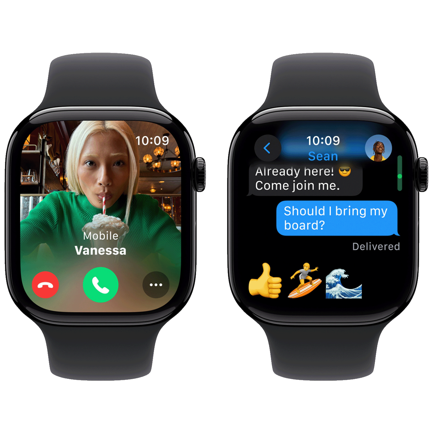 Pošaljite poruku, obavite poziv, slušajte glazbu i podcaste te primajte obavijesti u pokretu. Apple Watch Series 10 (GPS) radi s vašim iPhoneom ili Wi-Fi-jem kako biste ostali povezani.