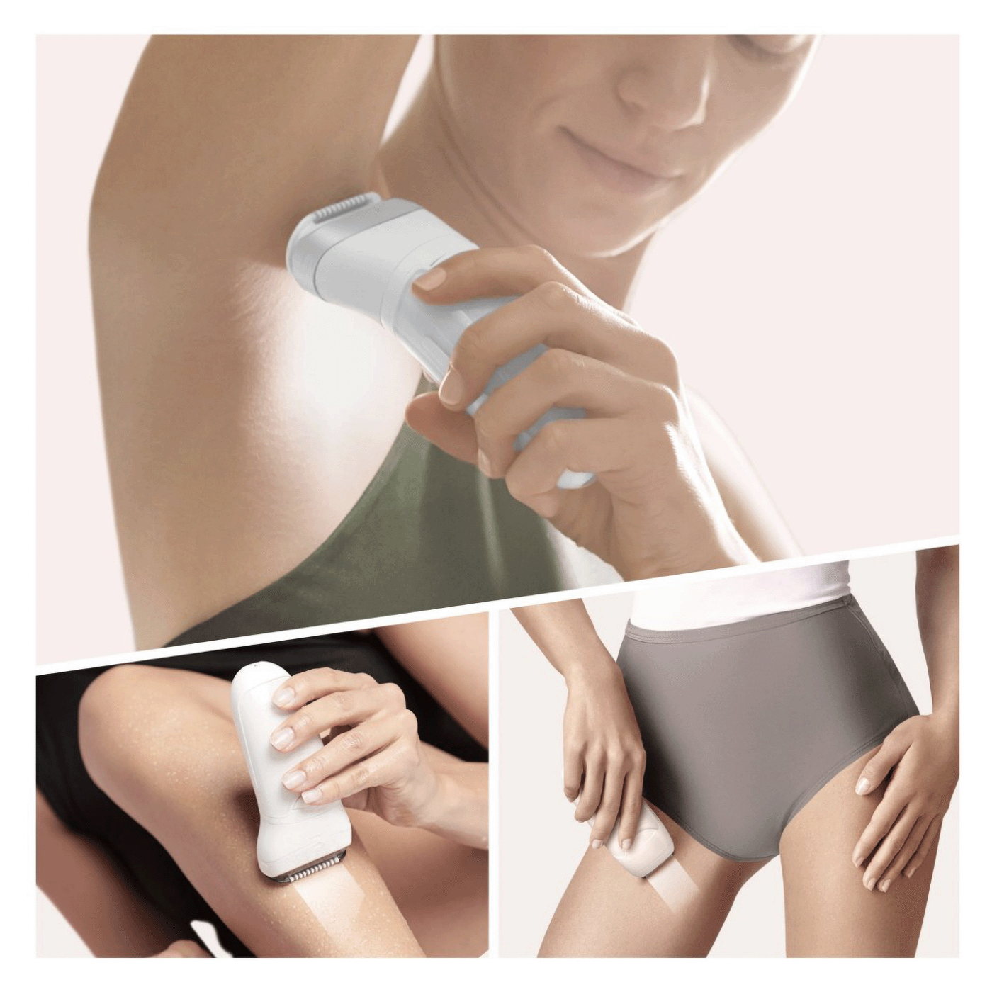 Ovaj epilator ima i bežični dizajn i može se koristiti u kadi ili pod tušem, što je velika prednost jer toplina i vlaga omekšaju kožu i čine uklanjanje dlačica još ugodnijim. Epilator se puni brzo i ima dugačak vijek trajanja baterije, što znači da možete ukloniti dlačice s cijelog tijela bez prekida.