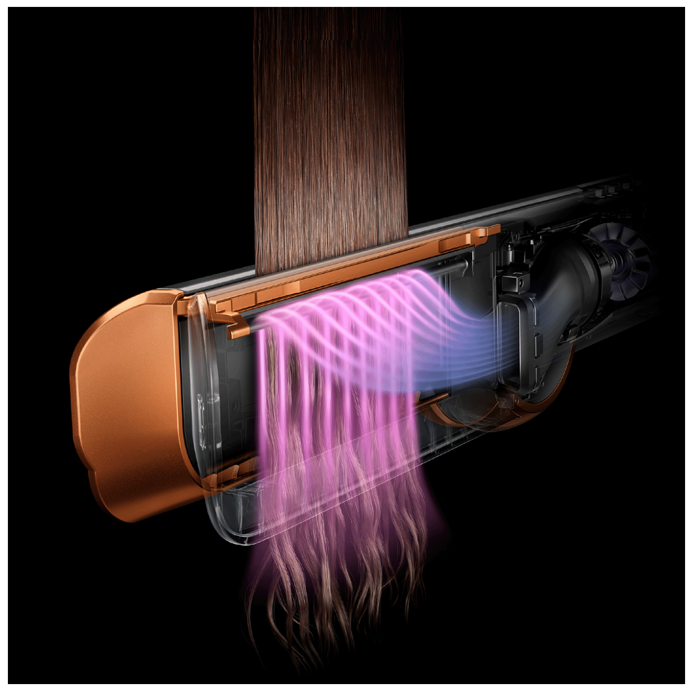 Naša najnovija tehnologija za njegu kose koristi protok zraka pod visokim tlakom za ravnanje kose dok se suši. Zrak se precizno zagrijava i ravnomjerno projicira kroz pramen dok stilizirate – bez potrebe za ekstremnom toplinom.