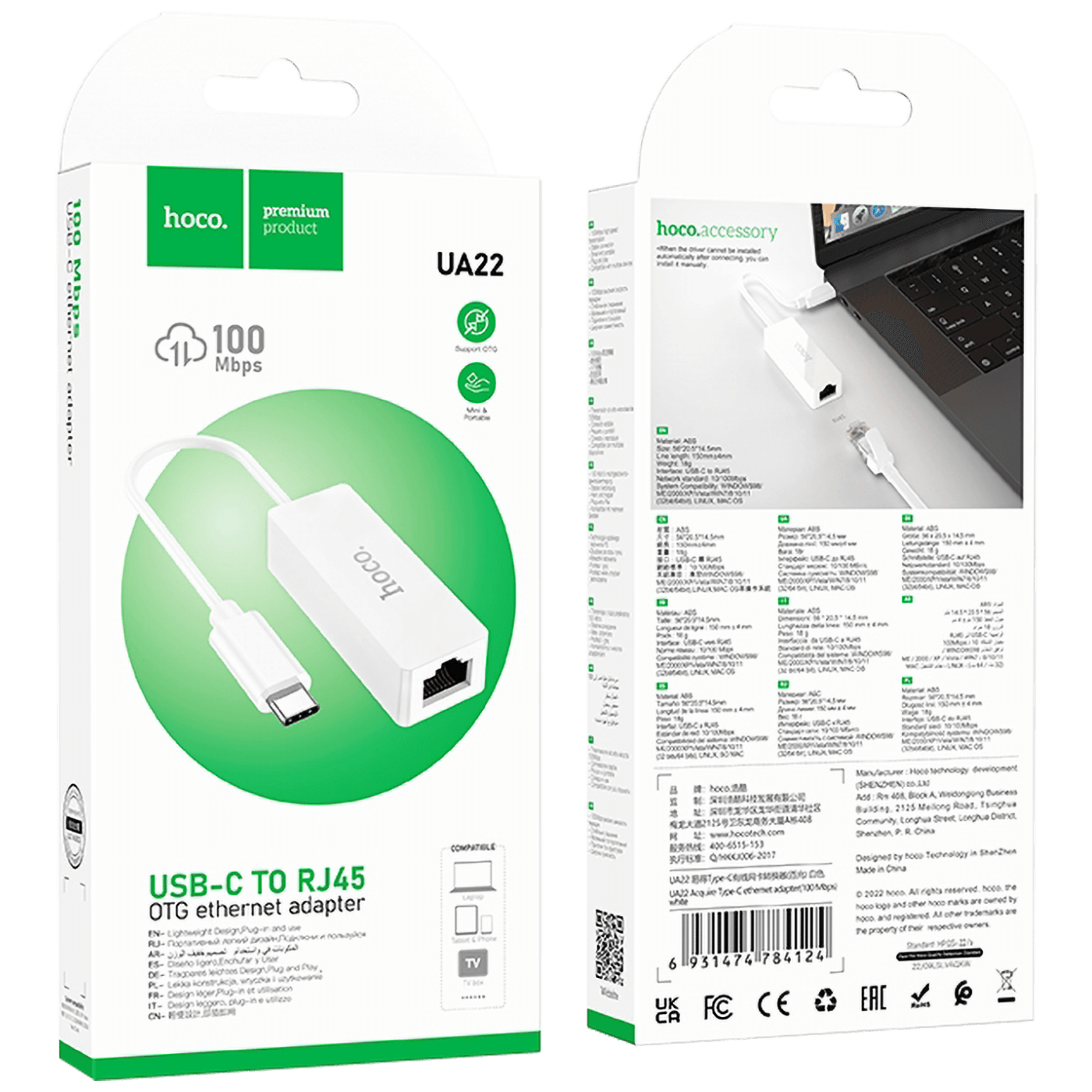 hoco. Adapter USB type C na LAN – UA22 type C