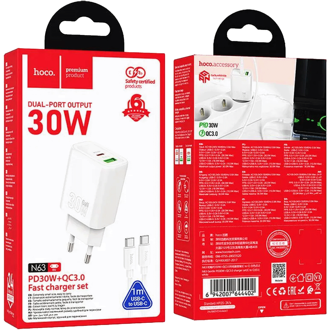 hoco. Punjač kućni sa type C kabelom, PD30W, QC3.0 – N63 Gentle type C