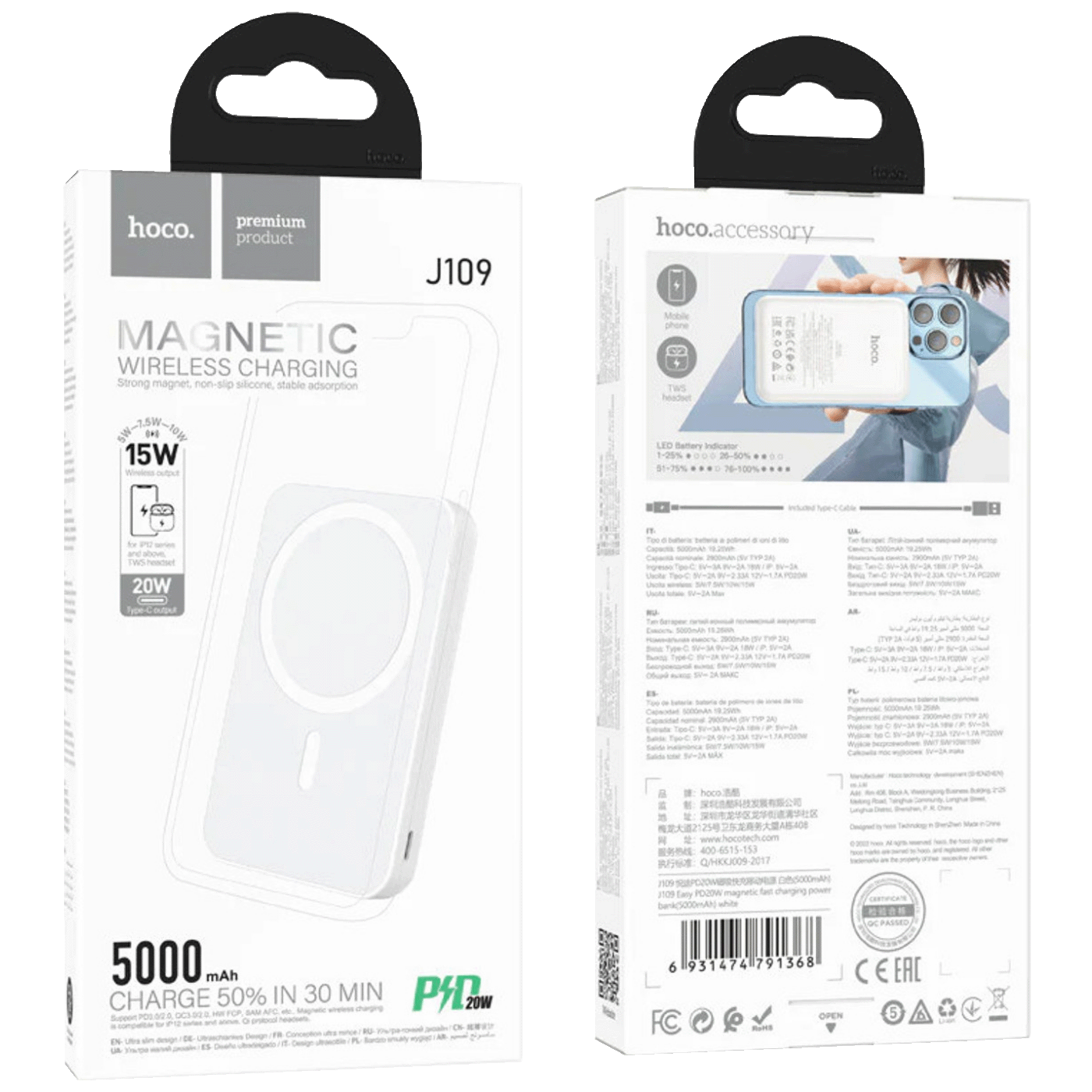 Prijenosni punjač, PowerBank, Hoco J109 MagSafe izvrstan je dodatak uređajima koji podržavaju bežično punjenje, zahvaljujući kojoj sve njezine značajke možete koristiti dulje bez ograničenja.