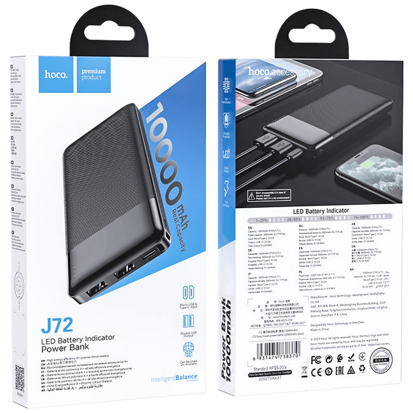 hoco. Punjač prijenosni za mobitele, 10000 mAh, 2A / 2A – J72 Easy travel