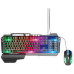 Tipkovnica + miš, gaming set, RGB pozadinsko osvjetljenje, 9 svjetlosnih efekata, QWERTY tipke, 104 tipke, dužina kabela 1.5 met., dimenzije 465 x 180 x 40 mm, USB