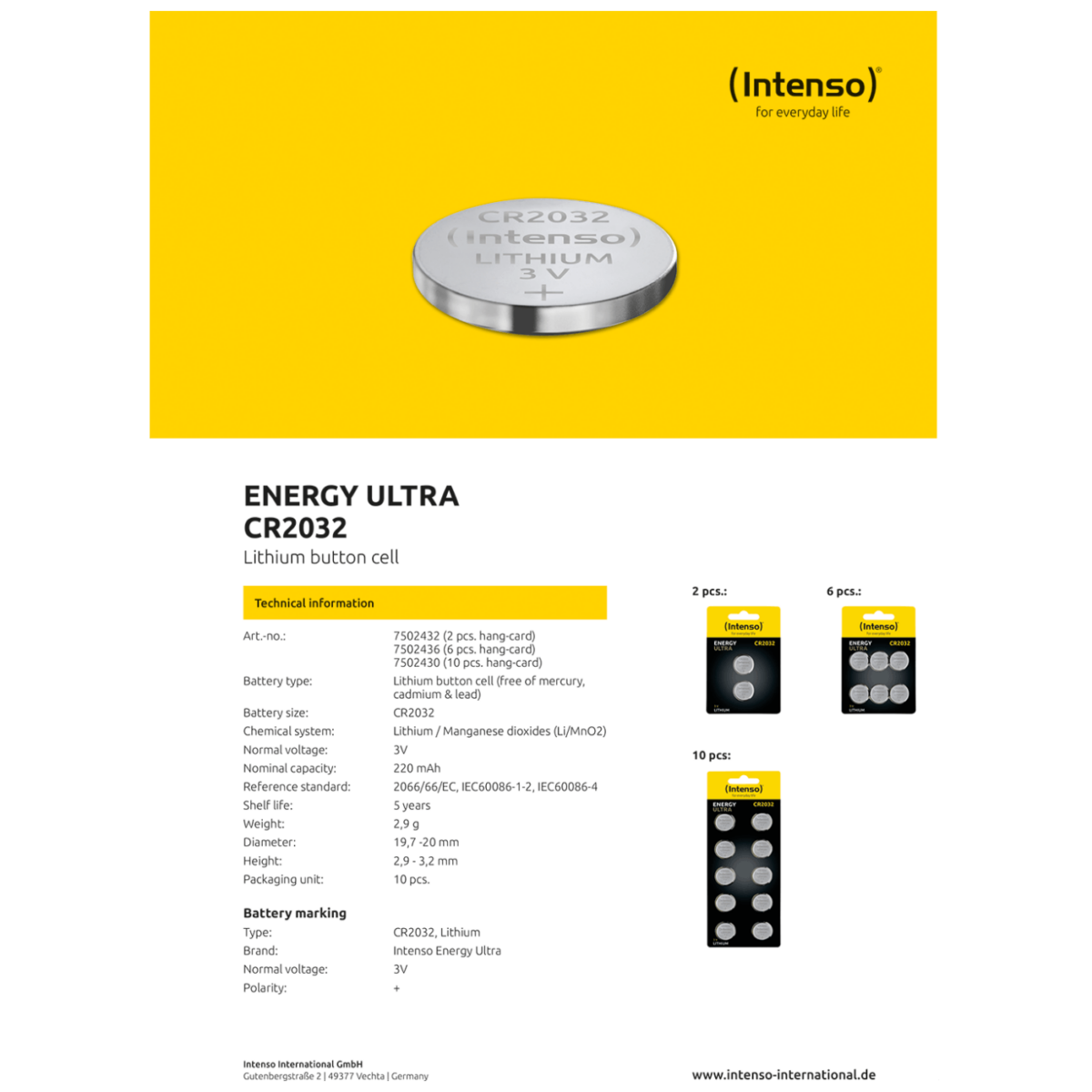 (Intenso) Baterija litijska, CR2032/6, 3 V, dugmasta, blister 6 kom