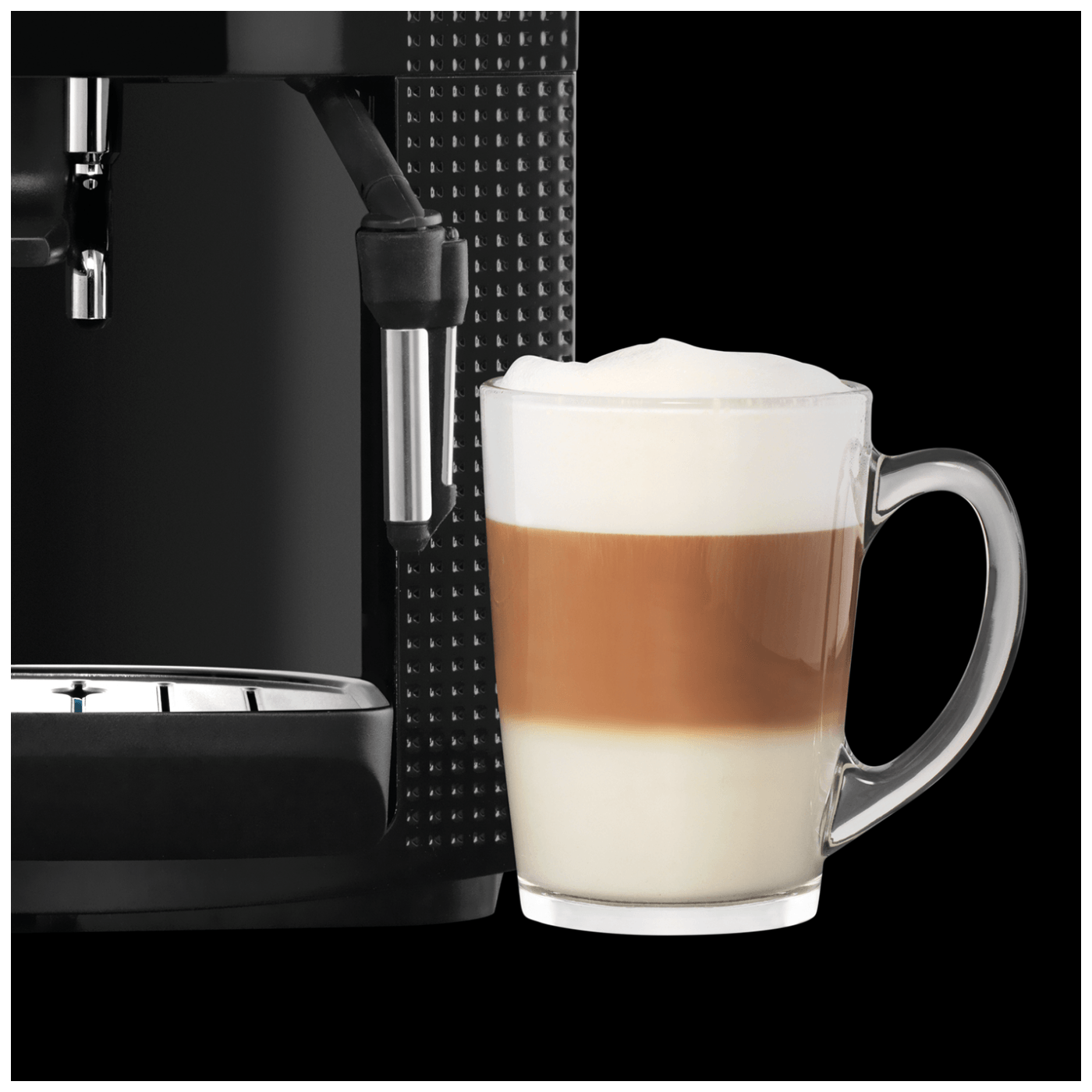 Snaga 1450 W, pritisak 15 bar, metalni konusni mlin, kapacitet spremnika za zrna kafe 260g., kapacitet spremnika za vodu 1.7 lit., odvojiv spremnik za vodu, sistem za detekciju praznog spremnika, cjevčica za paru, 3 razine temperature, 3 postavke jačine kafe, 3 razine finoće mljevenaj kafe, funkcija pare, detekcija kamenca, nosač za šalicu