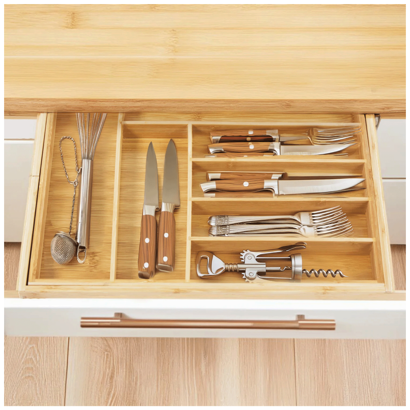GreenBlue GB379 organizator za pribor od bambusa iznimno je praktično i elegantno rješenje za pohranjivanje pribora za jelo i ostalog kuhinjskog pribora.