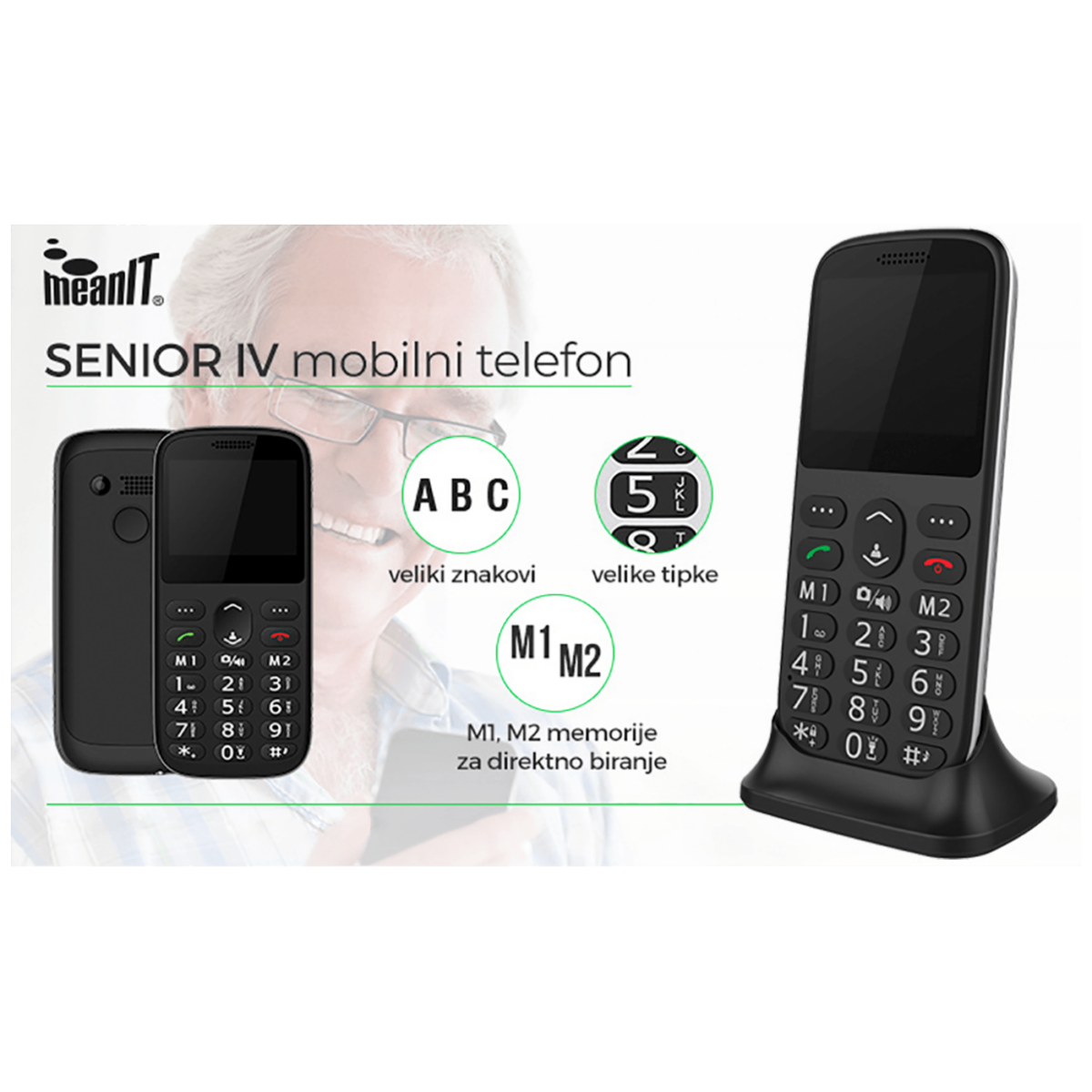 MeanIT Telefon mobilni, 2.31” zaslon, SOS tipka – SENIOR IV Black
