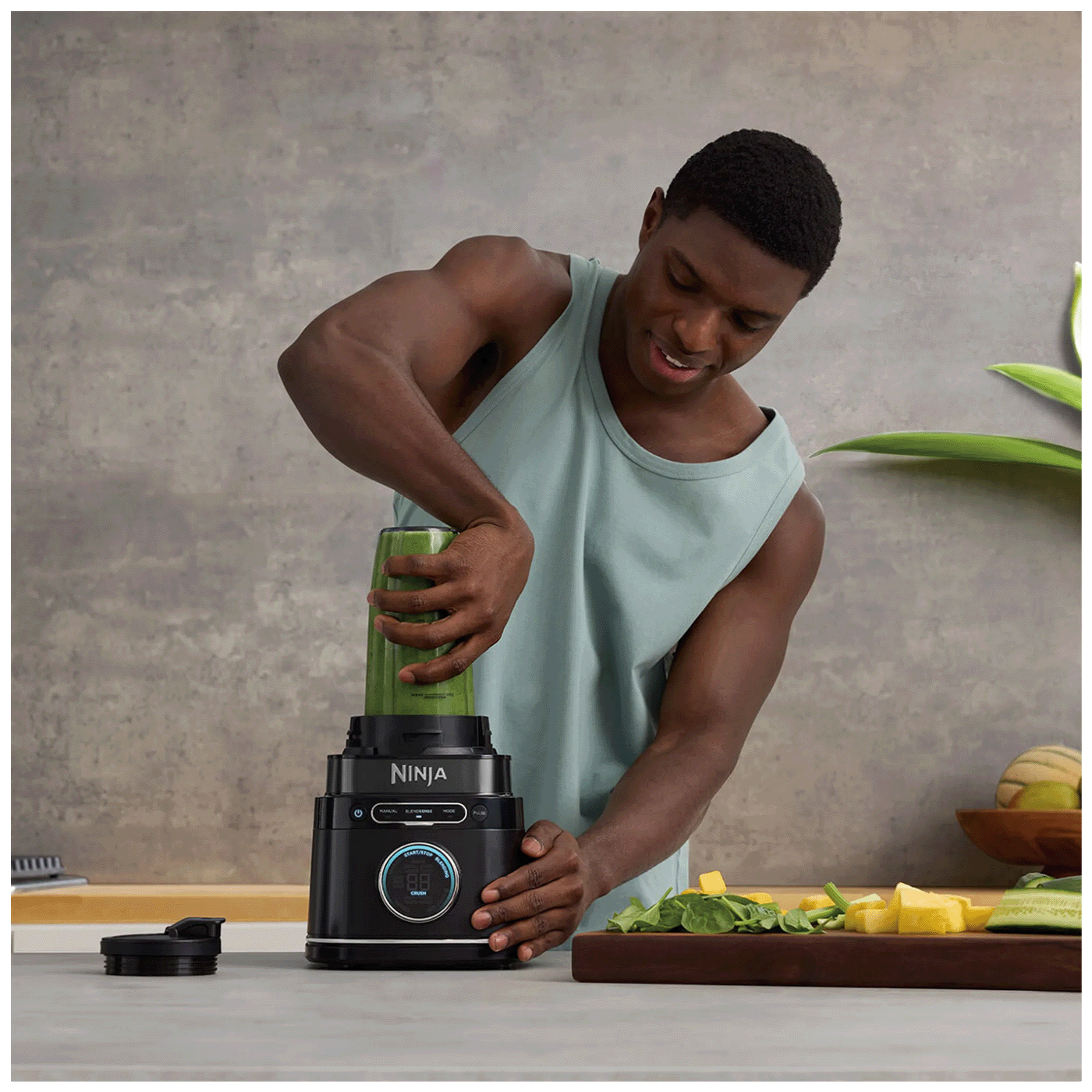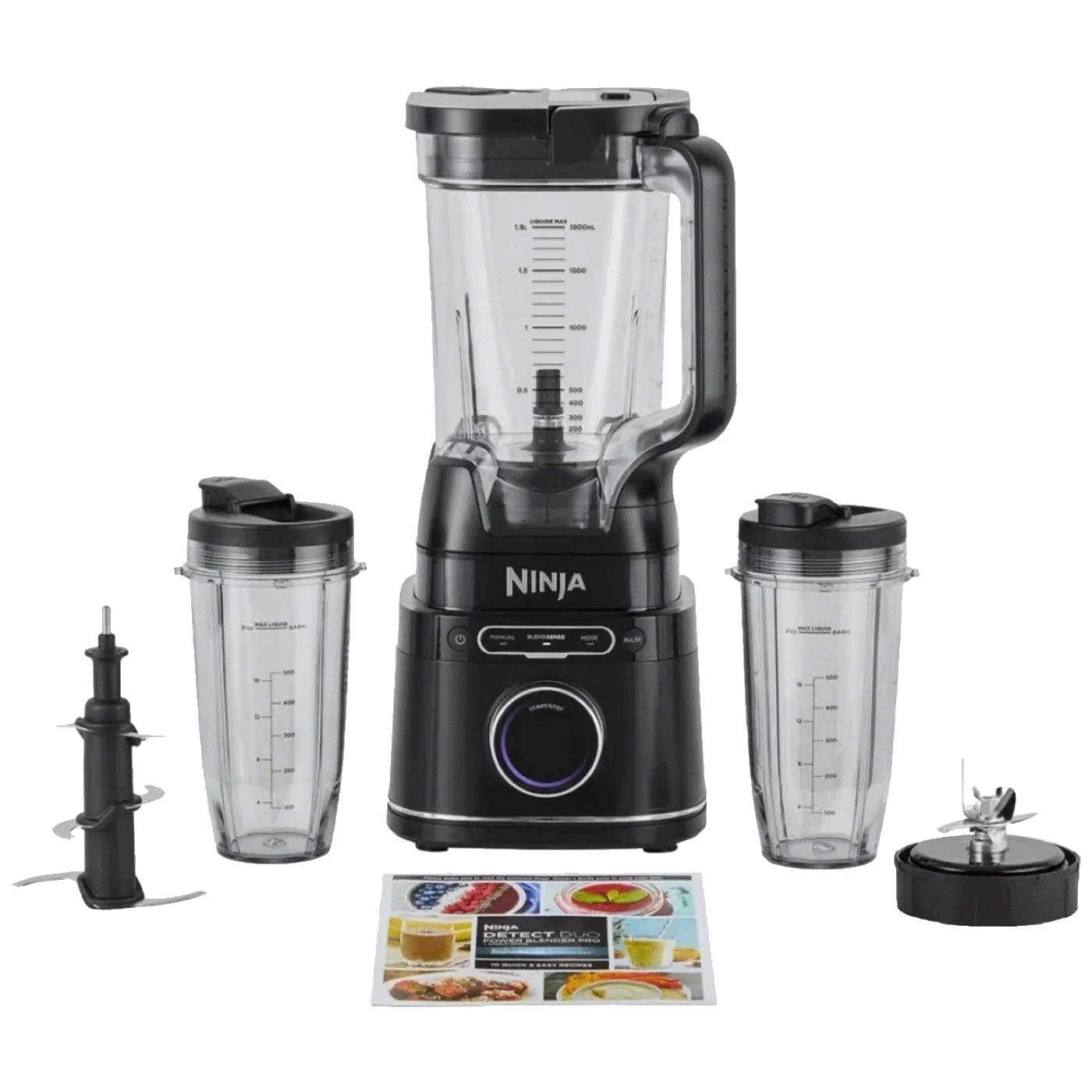 Uključeno u isporuku: baza motora od 1200 W, staklenka (2,1 l), 2 šalice za jednokratno posluživanje (700 ml), Ninja Detect Total Crushing and Slicing Blade, Hybrid Edge Blades, knjižica s receptima za inspiraciju.