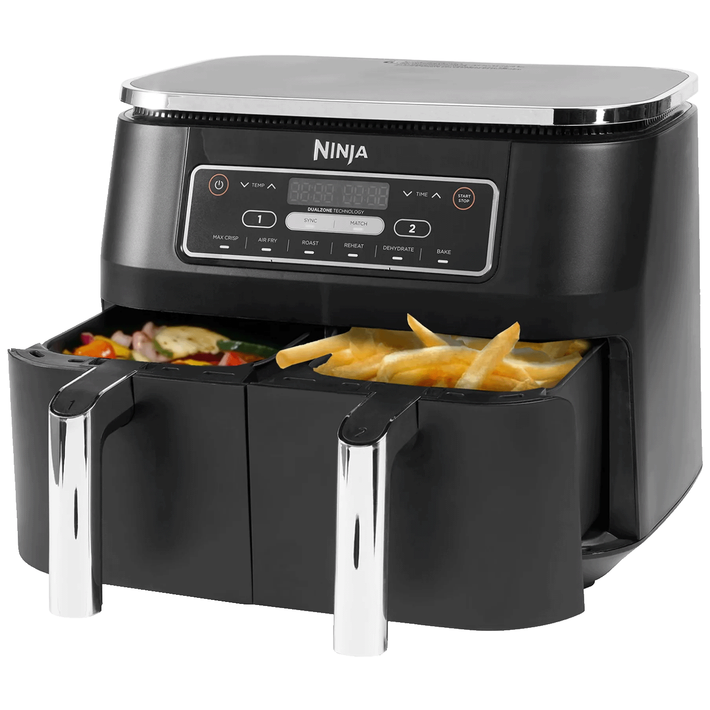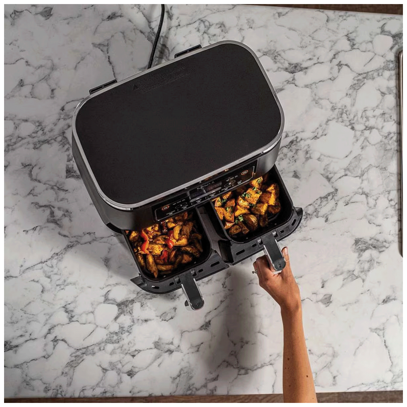 Kad kuhate, vrijeme je sve. Ninja Foodi Dual Zone Air Fryer kapaciteta 7,6 l pomaže vam pripremiti svoj obrok do savršenstva i poslužiti ga u isto vrijeme.
