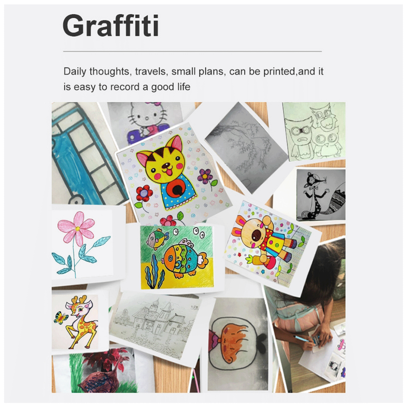 Ovaj mini štampač je opremljen visokokvalitetnom termalnom glavom za štampanje koja pruža jasne crno-bijele slike bez potrebe za kertridžima sa tintom ili potrošnim materijalom. Uz rezoluciju do 200 dpi, razne slike se mogu brzo i jednostavno odštampati.