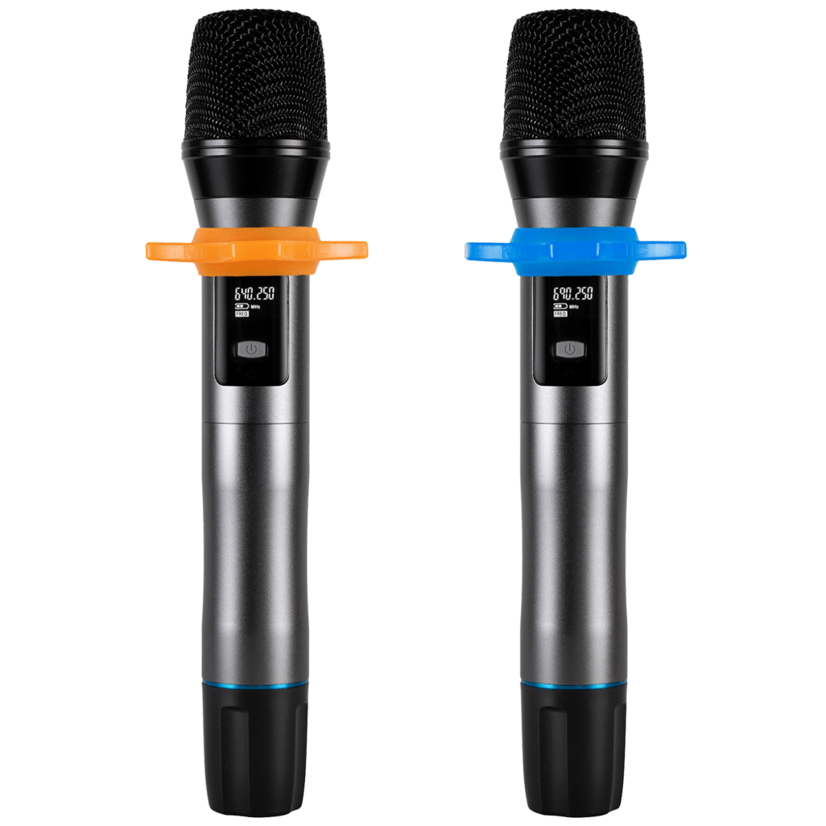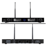 Set 2 bežična mikrofona i prijemnik, domet do 140 met. ( na otvorenom ), radna frekvencija UHF 518 – 690 MHz, audio izlaz 0 – 500 mW, osjetljivost 105 dB, sučelje 2 x XLR / Ø6.3 mm jack, višenamjenski digitalni zaslon, prikaz frekvencija / status kanala / stanja baterije, mjerač jačine RF radio signala, AF mjerač razine audio signala, 2 x 100 kanala za odabir, automatsko ili ručno podešavanje, brzo infracrveno uparivanje, uključivanje / isključivanje bez buke, dimenzije: mikrofon Ø50 / 35 x 265 mm, prijemnik 420 x 55 x 220 mm, napajanje : mikrofon 2 x AA baterije ( nisu uključene u pakiranje ), prijemnik 230 V ~ ( adapter ), mogućnost ugradnje u rack policu