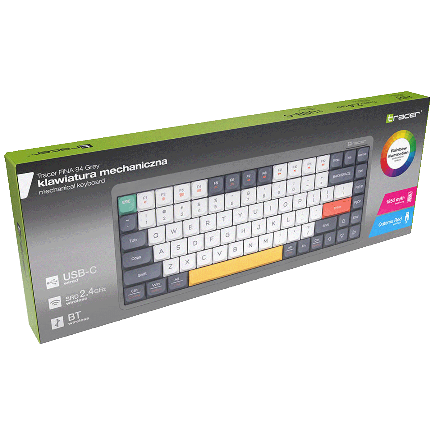 Tracer Tastatura sa osvjetljenjem, USB/BT/WiFi, gaming, mehanička – FINA 84 Grey