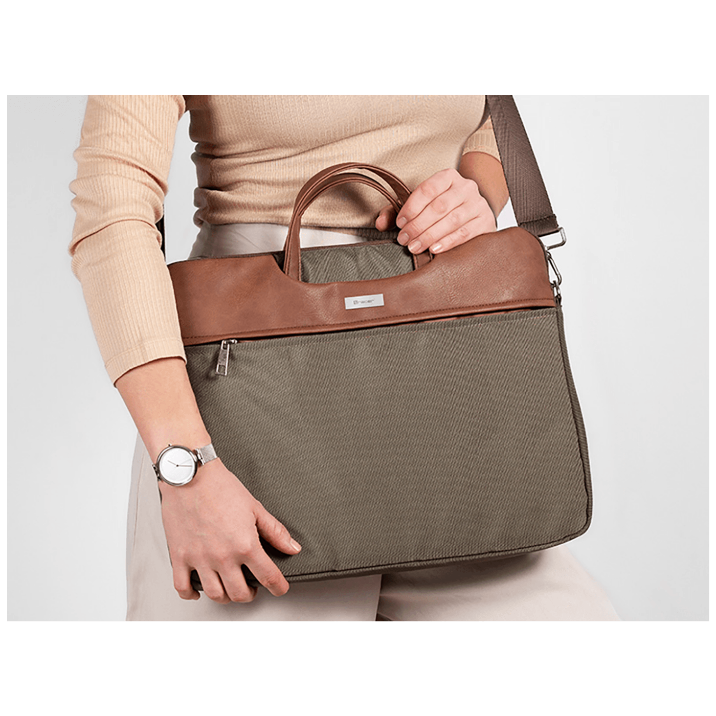 Kombinacija izdržljive eko kože, metalnih dodataka, udobnih ručki i regulirane naramenice pouzdano je rješenje koje jamči udobnost korištenja, kao i visoku razinu zaštite transportiranih uređaja. Srebreni detalji i izvanredna boja daju torbi jedinstveni šik i eleganciju.