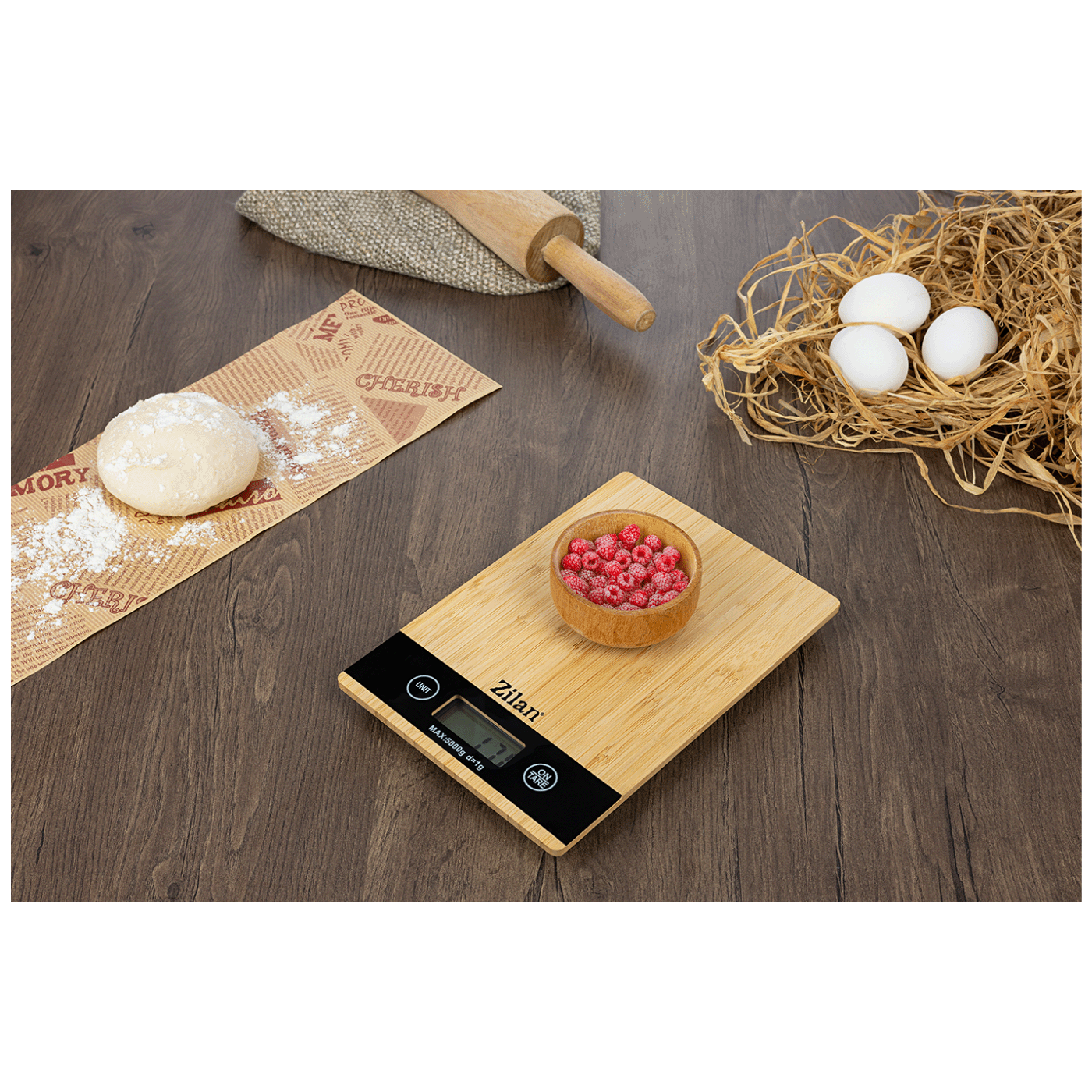Zilan ZLN8989 je moderna kuhinjska vaga izrađena od prirodnog bambusa, koja kombinuje stil i funkcionalnost. Sa kapacitetom vaganja do 5000g (5kg) i preciznošću od 2g, idealna je za precizno mjerenje sastojaka prilikom kuhanja i pečenja.