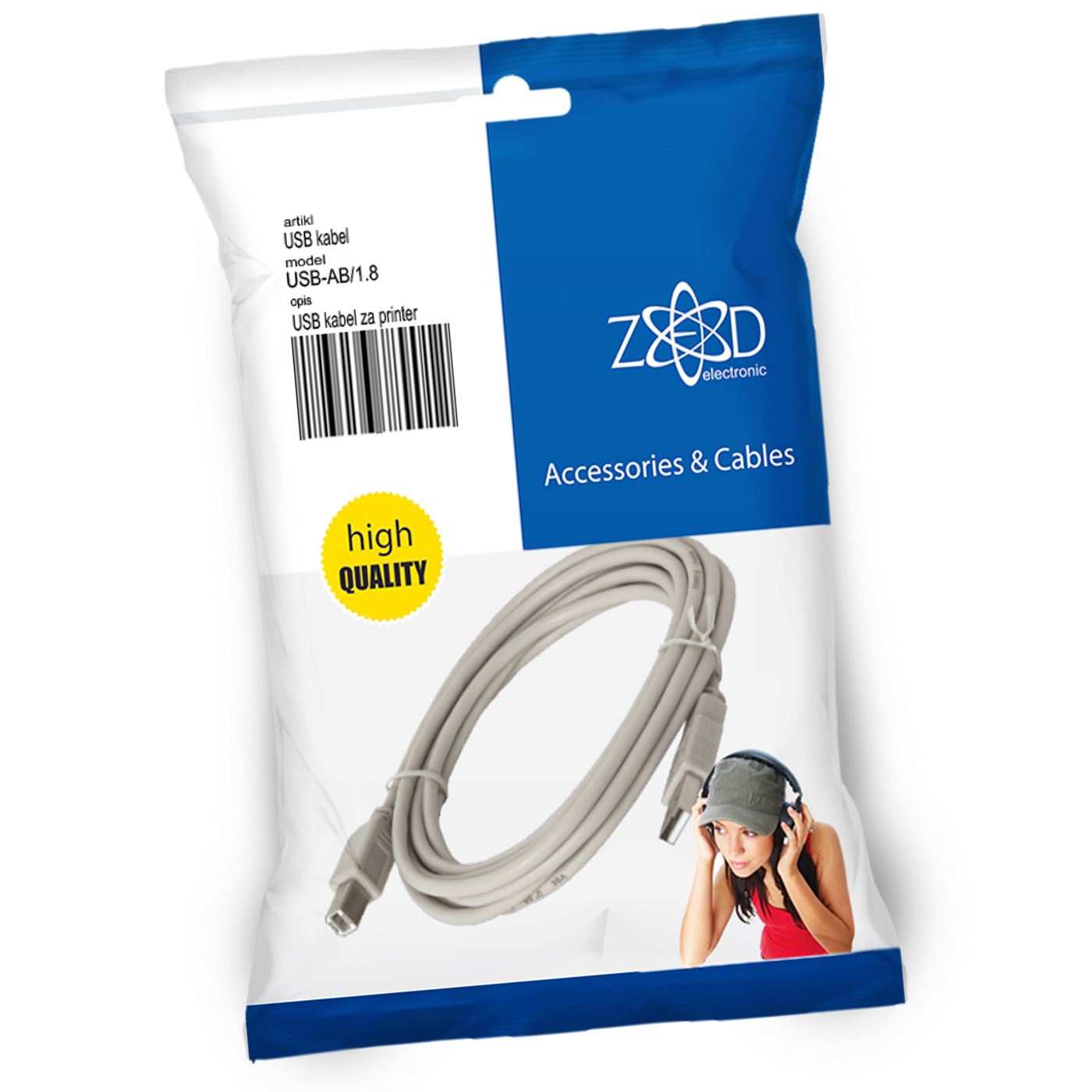ZED electronic USB kabl za printer, dužina 1.8 metara – USB-AB/1.8